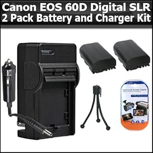 Right now you are searching for 2 Pack Battery Kit For Canon EOS 60D, Canon EOS 5D Mark III DSLR Camera Includes 2 Extended Replacement LP-E6 (2200 mAH) Battery (with Info-Chip!) + 2 Ac/Dc Rapid Travel Battery Charger + Mini Tripod + LCD Screen Protectors. Battery Shows time on LCD!. Purchase this item and anything else you require in terms of all your needs. For secure and reliable service, shop right here at here.