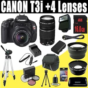 Buy Canon EOS Rebel T3i 18 MP CMOS Digital SLR Camera with EF-S 18-55mm f/3.5-5.6 IS II Zoom Lens & Canon EF 75-300mm f/4-5.6 III Telephoto Zoom Lens + Wide Angle/Telephoto 16GB Deluxe Accessory Kit this month to take advantage of these low prices and have your package shipped to you right away.