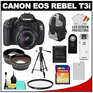 At our site, you will discover Canon EOS Rebel T3i Digital SLR Camera Body & EF-S 18-55mm IS II Lens with 16GB Card + .45x Wide Angle & 2x Telephoto Lenses + Tripod + Case + Battery + Remote + Filter + Accessory Kit available at our low prices. Shop now for this item and anything else we have available at our affordable prices.